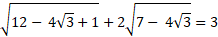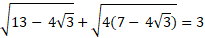 W tym zadaniu zastosuj rozłożenie równania pod pierwiastkiem na takie czynniki, aby móc je zwinąć we wzór skróconego mnożenia. Pamiętaj, aby nie zmieniło to wartości wyrażenia pod pierwiastkiem. 13 można rozłożyć jako 12 + 1, a 7 jako 3 i 4. Teraz podziel wyraz z pierwiastkiem, czyli