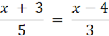 Należy pomnożyć równanie na krzyż, stosując proporcję. Następnie należy pomnożyć sumę i różnicę algebraiczną przez liczby poprzedzające ich nawiasy. Następnie należy przenieść niewiadome na lewą stronę równania a liczby na prawą stronę równania. Na koniec dzielimy równanie przez liczbę stojącą przy x.