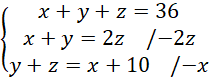 Wyznacz jakie to trzy liczby, jeśli ich suma jest równa 36, a suma pierwszy i drugiej liczby jest dwukrotnie większa od trzeciej liczby, zaś suma drugiej i trzeciej jest o 10 większa od pierwszej liczby.