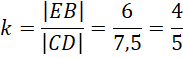 Następnie wyznacz skalę podobieństwa podanych trójkątów. Skorzystaj z tego, że jest ona stosunkiem odpowiadających sobie boków w trójkątach podobnych i ją oblicz.