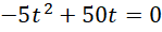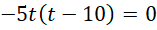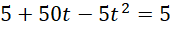 Oblicz, po ilu sekundach od momentu wypuszczenia z łuku strzała ponownie osiągnie wysokość, z jakiej ją wypuszczono, jeśli z wysokości 5 m wypuszczono z łuku strzałę pionowo do góry z prędkością początkową 50 m/s. Wysokość strzały nad ziemią (w metrach) opisuje wzór