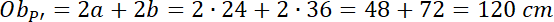 Wyznacz obwód prostokąta P’, jeśli dany jest prostokąt P o bokach 12 cm i 8 cm, a skala podobieństwa prostokąta P’ do P jest równa 3.