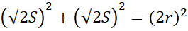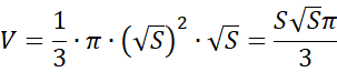 Oblicz pole powierzchni całkowitej i objętość stożka, którego przekrojem osiowym jest trójkąt prostokątny o polu równym S.