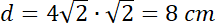 Wyznacz długość przekątnej graniastosłupa prawidłowego czworokątnego, którego krawędź podstawy ma długość 4 cm, a przekątna ta tworzy z przekątną podstawy kąt