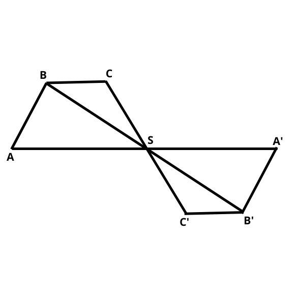 Punkty A i A’ są symetryczne względem punktu, wtedy gdy ten punkt jest środkiem odcinka AA’.