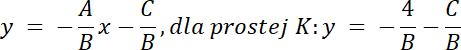 Równanie ogólnej prostej k, można przedstawić w postaci kierunkowej, gdy B ≠ 0