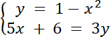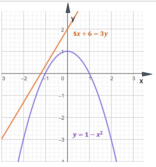 W tym zadaniu musisz rozwiązań układ równań, który składa się: z równania prostej i równania paraboli. Przy rozwiązaniu, okazuje się, że prosta i parabola nie mają części wspólnej, mimo to narysuj figury w układzie współrzędnych, aby sprawdzić słuszność obliczeń.