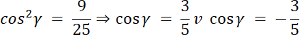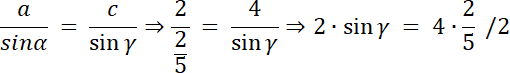 W tym zadaniu opisz okrąg na trójkącie ABC, a następnie skorzystaj z jedynki trygonometrycznej, aby wyznaczyć wartość sin α. Skorzystaj z twierdzenia sinusów, aby wyznaczyć sinus γ, a potem z jedynki trygonometrycznej wyznacz cos γ. Zauważ, że γ mogą należeć od przedziału (0°, 180°), więc przy rozwiązywaniu, skorzystaj ze wzoru redukcyjnego dla funkcji trygonometrycznej cos: cos γ = –cos(180°–γ), żeby nie wykluczyć drugiego rozwiązania, przy wyznaczaniu wartości kąta α.