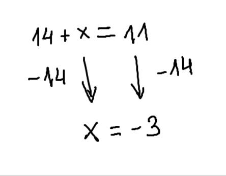 Wykonaj takie działania, by po lewej stronie został sam x. Odejmij 14 od obu stron równania.