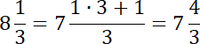 Zamieniając jedną całość na ułamek, w liczniku otrzymasz iloczyn 1 (bo zamieniamy tylko 1 całość) i mianownika, a następnie dodajesz licznik liczby początkowej. Zabieg ten ułatwia wykonywanie odejmowania liczb mieszanych.