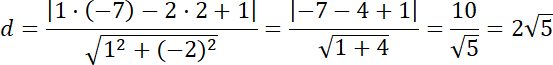 Wyznaczamy odległość punktu od prostej: