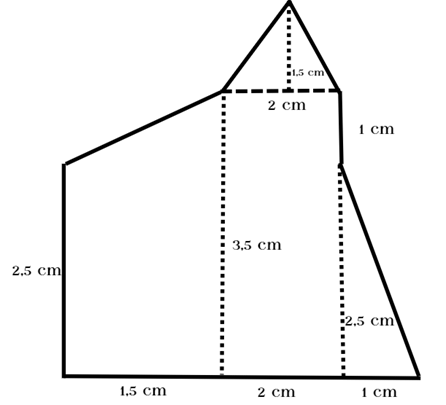 Podziel podany wielokąt na mniejsze figury i oblicz ich pole.