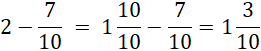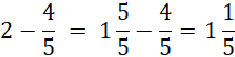 W pierwszej kolejności zamień jedną całość na ułamek. Gdy odejmujesz ułamki o jednakowych mianownikach, musisz odjąć od siebie liczebniki, a mianownik pozostawić bez zmian, pozostałą całość też zostawiasz bez zmian.