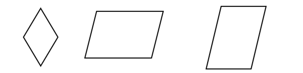 Narysuj dowolne czworokąty, które mają dwie pary boków równoległych, czyli takich, które „równo do siebie leżą” i nigdy się nie przetną oraz przynajmniej jeden kąt ostry. Mogą być to np. równoległoboki.