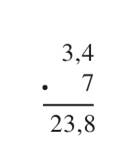 W pierwszym kroku pomnóż liczbę dziesiętną i naturalną sposobem pisemnym, czyli zapisz liczby tak jak w przypadku mnożenia pisemnego. Wykonaj je, a przecinek w wyniku zapisz, w tym samym miejscu, w jakim znajduje się w liczbie dziesiętnej.