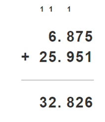 Ułamki dziesiętne dodaj pisemnie, zapisując liczby tak, aby ułamki znajdowały się pod sobą.