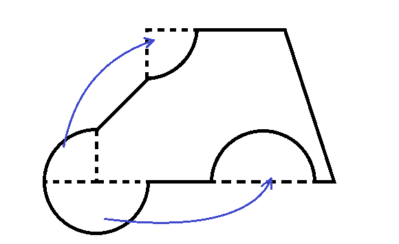 Półkole przenosimy tam, gdzie zmieści się w całości, a ćwierć koła dołączamy u góry jak na rysunku i tworzymy figurę składającą się z dwóch trapezów prostokątnych. Policz kratki i oblicz pola trapezów.
