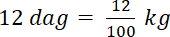 1 kg to 100 dag, a więc 12 dag można zapisać jako: