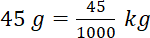 1 kg to 1000 g, a więc 45 g można zapisać jako: