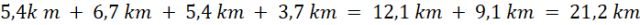 Odp. Jaś przeszedł 21,2 km w trzy dni.