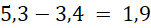 Oblicz różnicę liczb 5,3 i 3,4.