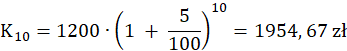 W tym zadaniu musisz obliczyć, ile wyniesie suma odsetek lokaty rocznej z oprocentowaniem równym 3% po 10 latach, na którą wpłacono 1200 zł.