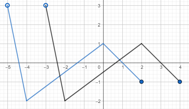 Wykres funkcji y = f(x + 2) jest zaznaczony kolorem niebieskim.