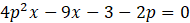 Rozwiązanie zadania zacznij od przekształcenia równania do postaci ax + b = 0. Następnie wyznacz takie wartości parametru p, dla których współczynnik a jest równy 0, natomiast wyraz wolny jest różny od 0. Warunki te są spełnione dla p =
