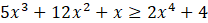 Aby rozwiązać nierówność przenieś wszystkie jednomiany na jedną stronę. Następnie oznacz otrzymany wielomian przez W(x). Zauważ, że przyjmuje on wartość 0 dla argumentu x = -1. Podziel wielomian przez x + 1, dzięki czemu możesz go zapisać w postaci iloczynu. Wielomian
