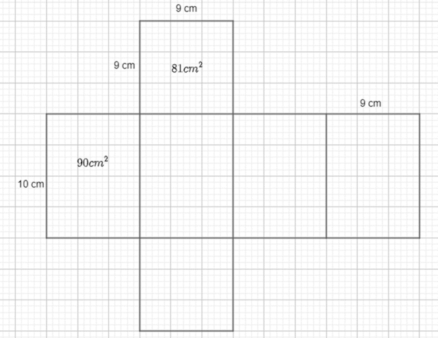 Zauważ, podstawa jest kwadratem. Znajdź liczbę, która po podniesieniu do potęgi drugiej daje 81 – jest to krawędź kwadratu, a także jeden z boków prostokąta. Odszukaj brakujący bok, dzieląc jego pole przez 9 cm.