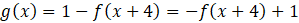 Przesuń otrzymany wykres o 4 jednostki w lewo równolegle wzdłuż osi OX oraz 1 jednostkę w górę równolegle wzdłuż osi OY, aby otrzymać wykres funkcji g:
