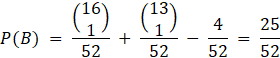 Aby wylosować figurę, losujesz 1 kartę z 16, ponieważ są po 4 figury w 4 kolorach. Aby wylosować kartę kier, losujesz 1 kartę z 13 i uwzględnij przy tym, że istnieją 4 figury kier, których nie należy policzyć dwa razy. Otrzymasz wówczas