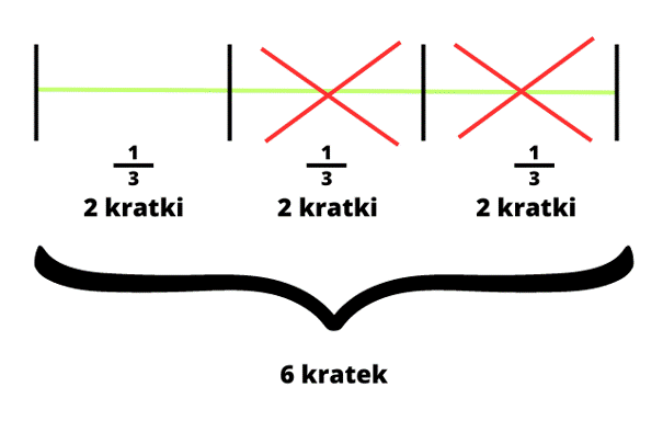 Musisz wskazać, o jaki ułamek został skrócony odcinek. Następnie musisz określić, ile wynosi jego długość po tej operacji.