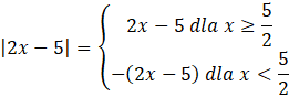 będzie równe 0, więc korzystając z definicji wartości bezwzględnej, zapisujemy: