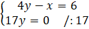 Z drugiego równania łatwo wyznaczyć y, który wynosi 0. A następnie do pierwszego równania podstawić 0 za y.