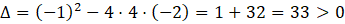 , więc możemy policzyć jego rozwiązania za pomocą wyróżnika równania kwadratowego