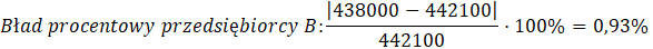 Przedsiębiorca B popełnił mniejszy błąd procentowy.