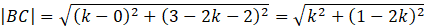 Wyznacz wartości k, dla których punkty A(-3, 0), B(0, 2) i C(k, 3-2k) stanowią kolejne wierzchołki rombu.