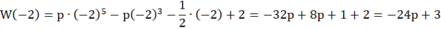 Aby wielomian W(x) był podzielny przez dwumian (x + 2) to W(-2) = 0, zatem: