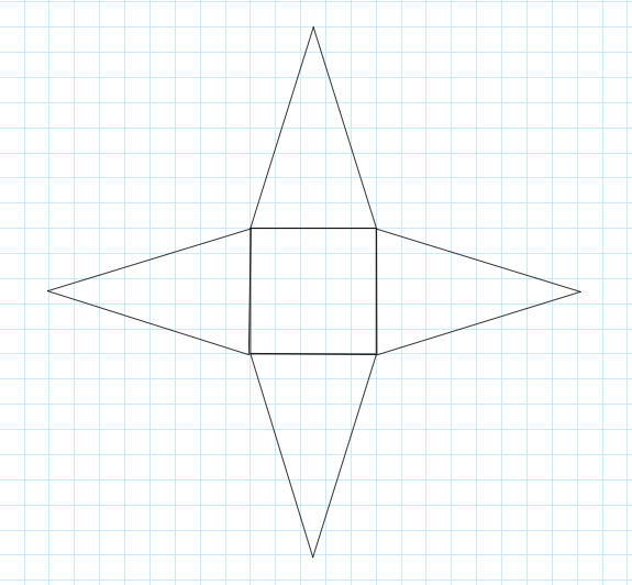 Odczytaj wymiary ostrosłupa z rysunku i narysuj odpowiednią siatkę.