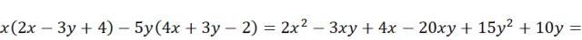 Wymnóż sumy algebraiczne w nawiasach przez jednomiany, a następnie zredukuj wyrazy podobne.
