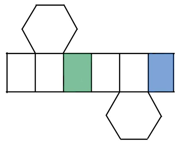 Niebieskim kolorem zaznacz ścianę równoległą do zielonej.
