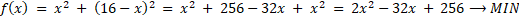 Wyznacz możliwie najmniejszą sumę kwadratów dwóch liczb, których suma wynosi 16.
