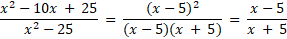 Znajdź dziedzinę wyrażenia wiedząc, że liczba w mianowniku musi być różna od zera. Uprość ułamek skracając licznik z mianownikiem i korzystając ze wzorów skróconego mnożenia