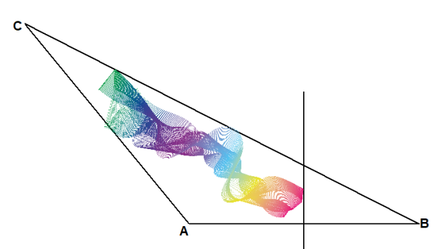 Symetralna dzieli odcinek na pół, przechodzi pod kątem prostym do odcinka. Podzieli ona trójkąt tak, że część punktów będzie leżeć bliżej wierzchołka A, a część punktów będzie leżeć bliżej wierzchołka B.