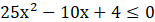 W pierwszej kolejności szukamy miejsc zerowych. Następnie rysujemy parabolę z ramionami skierowanymi w górę, bo współczynnik przy najwyższej potędze jest dodatni. Wszystkie wartości są dodatnie, więc nierówność jest zatem sprzeczna.