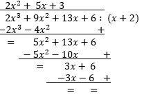 Skoro liczba a jest pierwiastkiem wielomianu w, to dzieli się on przez dwumian x - a bez reszty. Dokonujemy dzielenia przez ten dwumian w następujący sposób. Pierwszy od lewej wyraz wielomianu kwadratowego dzielimy przez pierwszy wyraz podanego dwumianu. Następnie mnożymy go przez dzielnik x + 2 i wynik podpisujemy pod dzielną i odejmujemy go od niej poprzez dodanie wielomianu o przeciwnych współczynnikach. Otrzymujemy pierwszą resztę z dzielenia w ten sposób. Powtarzamy opisaną procedurę, dopóki nie otrzymamy wielomianu stopnia niższego niż dwumian, przez który dzielimy. Następnie wyznaczamy miejsce zerowe trójmianu kwadratowego Korzystając z delty. Przestawiamy wielomian w postaci czynników nierozkładalnych zapisując w funkcji kwadratową w postaci iloczynowej.
