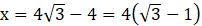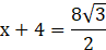 Obliczamy długość x, wiedząc że jest o 4 mniejsza od liczby