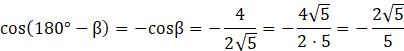 Wylicz sumę cosinusów kątów α i β, jeśli punkt P(-2, 4) należy do ramienia końcowego kąta α, a punkt Q(-4, 2) do ramienia końcowego kąta β.
