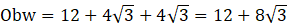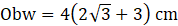 Wysokość opuszczona z wierzchołka pomiędzy ramion trójkąta równoramiennego dzieli podstawę na pół. Obwód trójkąta równoramiennego Dany jest wzorem obw = 2c + a, gdzie c jest długością ramienia oraz a długością podstawy. Znamy wartość pola, którego wyliczamy wysokość i długość podstawy i podstawiamy do wzoru na obwód. Miary kątów wyznaczamy z funkcji trygonometrycznych podstawiając odpowiednie stosunki boków.